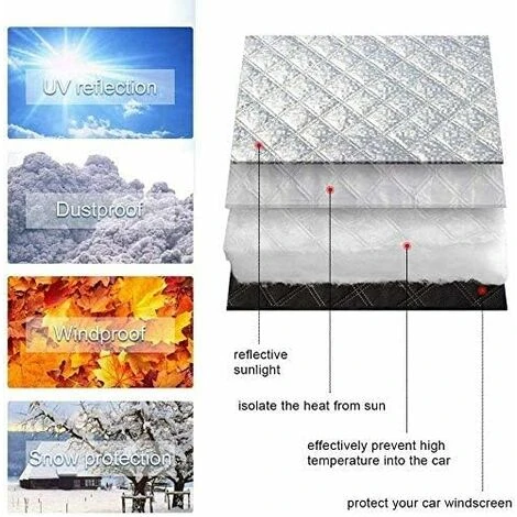 3. Fornisce protezione contro il gelo e il ghiaccio in inverno e aiuta a mantenere il veicolo fresco in estate. Parabrezza protettivo per tutte le stagioni, facile da pulire.
