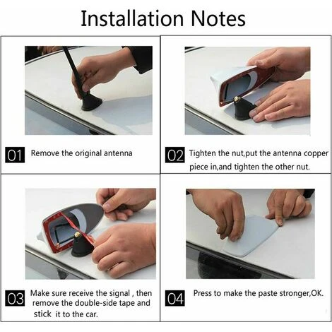 Installazione facile senza bisogno di trapano grazie all’adesivo . Pulisci e asciuga la carrozzeria, quindi incolla semplicemente la pinna sulla superficie.