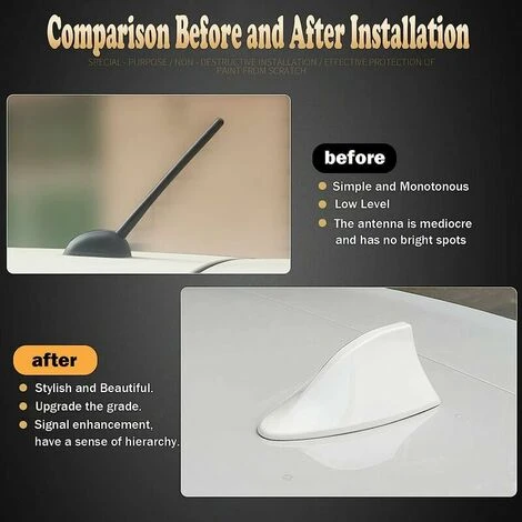 < forte> 【Facile da installare】 Installazione autoadesiva, nessuna perforazione richiesta, devi solo pulire e asciugare la tua auto e incollarla #39;Antenna a pinna di squalo sulla superficie del tetto. Impasto forte, non facile da staccare.