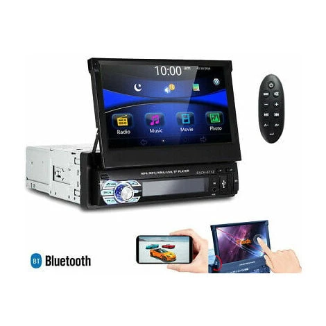 Stereo per auto, camper a 1 din con schermo touch a colori 7” a scomparsa, ovvero rientrante nel corpo dello stero.
