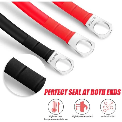 IL CAVO BATTERIA A 2 PIN È SICURO DA USARE: cavo batteria 12v con occhielli Il tubo in poliolefina termoretraibile forma una perfetta tenuta a ciascuna estremità, conferendo al cavo resistenza alle alte e alle basse temperature, elevata resistenza alla fiamma e resistenza all’ossidazione. Può resistere a test duri in ambienti estremi.