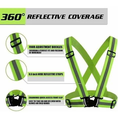 Versatilità illimitata: imbracatura riflettente di tipo fettuccia ad alta visibilità, gilet per tutte le attività all’aperto come corsa, ciclismo, escursionismo, jogging, costruzione o lavori stradali dove è richiesto abbigliamento ad alta visibilità.