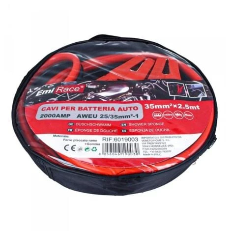 - Kit Cavi Per Avviamento Batteria Auto 2000 AMP, Sezione Cavo 35mmq, Lunghezza Da 2.5 Metri,Peso 2120g.