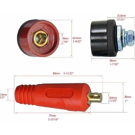 “Adatto a tutte le macchine per saldatura TIG e taglio plasmaConnettore da pannello cavo da 200 AConnettore cavo stile europeo1Connettore DKJ10-25 in colore rosso1Connettore DKJ10-25 in colore neroColore: nero rossoPeso: 200 gTaglia: 75*9 mm”