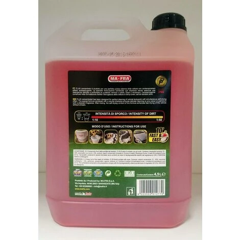 Diluire il prodotto nella proporzione di 1:10 – 1:50 a seconda dello sporco da trattare.
