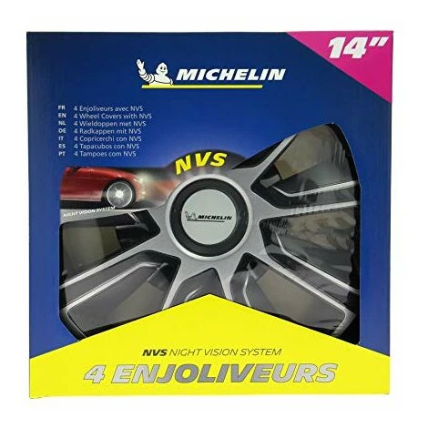 MICHELIN 4 Copricerchi Bicolore Nero Grigio Per Ruota 14 Pollici NVS 49