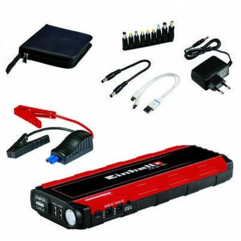 L’Einhell CE-JS 18 Jump-Start – Power Bank è un sistema di avviamento d’emergenza e di accumulazione dell’energia compatto e maneggevole che, pertanto, non dovrebbe mai mancare a bordo del veicolo e fuori casa. Con un unico apparecchio è possibile sia bypassare batterie scariche di autoveicoli che ricaricare rapidamente e facilmente dispositivi elettrici mobili, quali cellulari, laptop, fotocamere ecc. La batteria LiPo ad alte prestazioni con capacità 3 x 6000 mAh garantisce prestazioni adeguate in qualsiasi situazione. Grazie all’indicatore del livello di carica a LED è inoltre possibile rilevare rapidamente l’attuale livello della carica. Un’ulteriore pratica funzione di questo accumulatore di energia di piccole dimensioni è la luce di lavoro integrata a LED con luce permanente, lampeggiatore stroboscopico e segnale SOS per diverse situazioni di emergenza. Per effettuare la ricarica di svariate utenze elettriche come accumulatore di energia mobile, sono disponibili una presa USB da 5 V/2 A, un collegamento Speed Charging, una presa di collegamento per utenza da 12 V/10 A (per es. per compressori di veicoli) e una presa da 19 V/3,5 A (per es. per notebook/laptop). La dotazione comprende inoltre un cavo di avviamento d’emergenza con morsetti completamente isolati e protezione da sovraccarico per il collegamento a Power Pack, un cavo adattatore USB con 9 diversi adattatori notebook (compatibili per es. con i prodotti Dell, HP, IBM, Lenovo, Toshiba, Sony, Samsung, Acer, Asus, Fujitsu, NEC ecc.), e un alimentatore caricabatteria a 230 V. Per riporre l’apparecchio comprensivo dei suoi accessori in modo pratico e sicuro, nella dotazione è compresa un’apposita custodia protettiva.