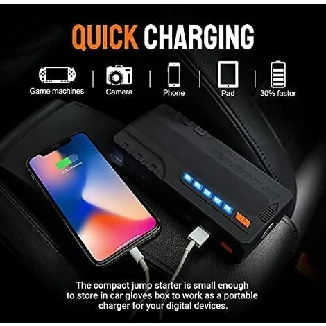 Il nostro booster batteria per auto, adatto per l’avviamento di auto, barche e moto a 12V, pratico e compatto, facile da usare ma molto potente, è uno strumento ideale per la tua vita.