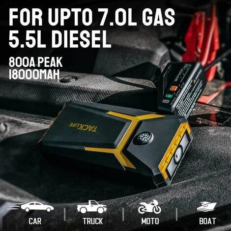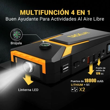 [MIGLIORA LE FUNZIONI DI EMERGENZA] Con 4 modalità di illuminazione: fissa, stroboscopica, SOS e avviso rosso. Questo motorino di avviamento può funzionare come torcia, spia di emergenza e semaforo? C’è anche una bussola integrata e un display LCD per aiutarti a trovare la strada quando ti perdi nella natura.