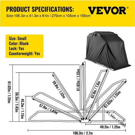 - Materiale: il nostro garage per moto è realizzato in tessuto impermeabile oxford 600D e un processo di cucitura con adesivo in PU ad alta pressione. Inoltre, il telaio in acciaio verniciato nera è robusto e resistente alla corrosione progettato per un uso duraturo.